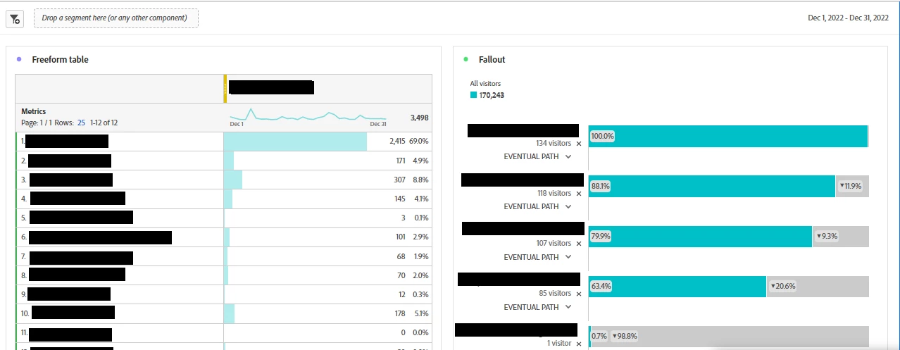 On the other hand, a freeform table would simply report the number of visitors at page A and the number of visitors at page B. And for page B, it would report on visitors who had not been to page A prior to going to page B.