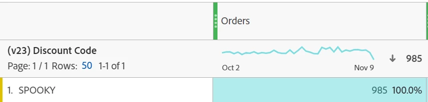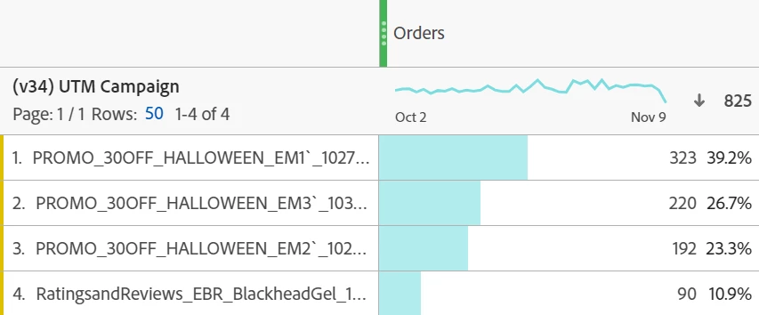 We were running a Halloween email campaign with a discount code. We had 3 separate UTM campaigns in which the code could've been redeemed on. When I pull the orders from the UTM campaigns, it shows 825. When I pull the discount code orders, it shows 985.