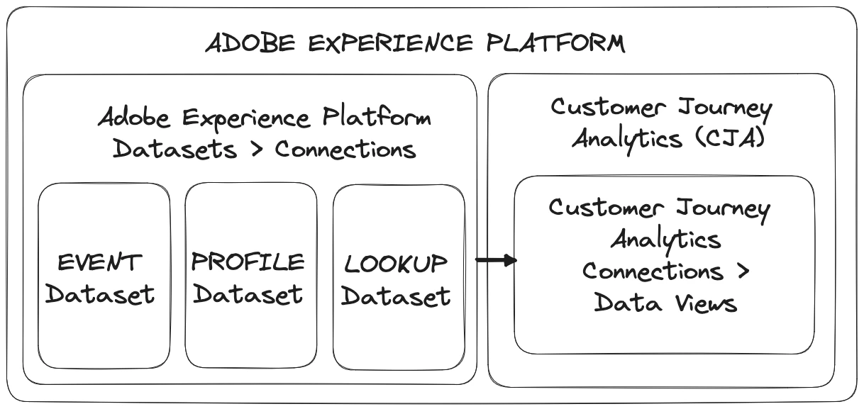 Adobe Customer Journey Analytics (CJA) is a workspace built on top of the Adobe Experience Platform (AEP). CJA enables organizations to analyze and optimize their customer journeys by providing a comprehensive view of the journey across multiple platforms, channels, and touchpoints. This empowers organizations to make informed decisions based on data-driven insights.