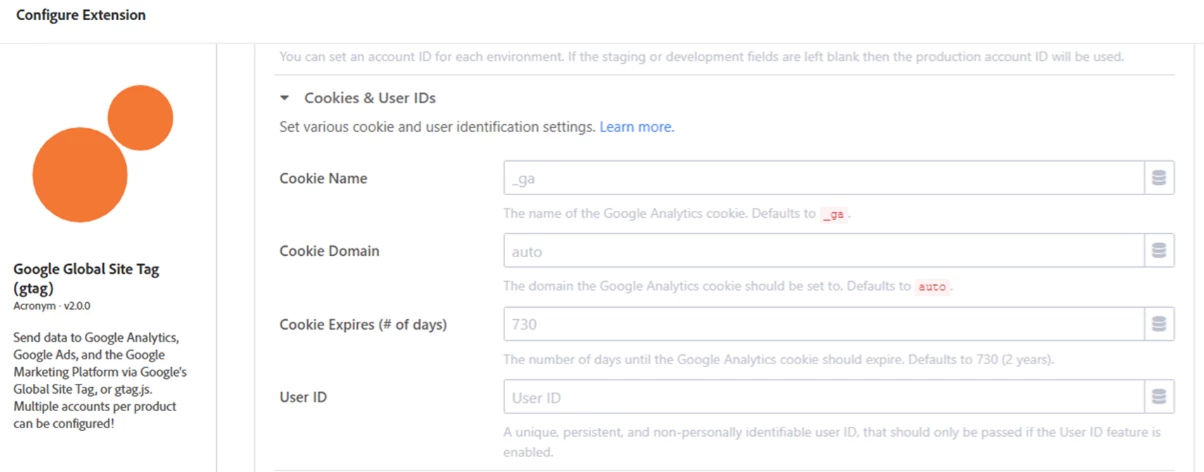 I'm using the Global Site Tag (gtag.js) by Acronym extension in Adobe Launch and have configured it with prod measurement ID.