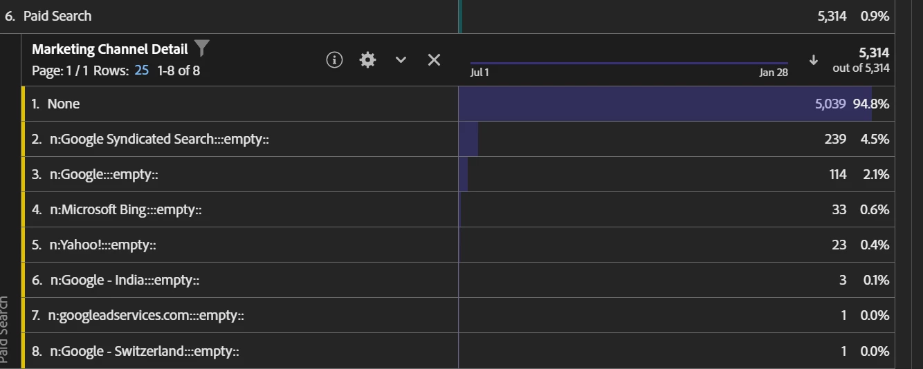 1. In Paid Search, I am seeing a lot of "None" - what might be the cause of that?