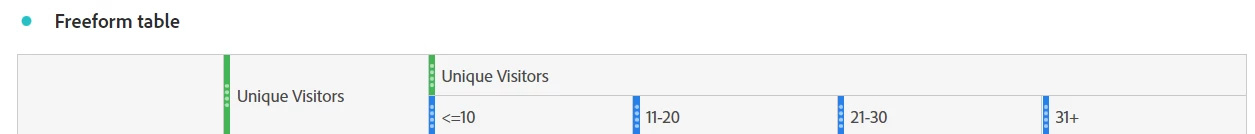 Now, you can create a freeform table with a column of ALL UVs, then you can create Columns for each of your buckets using the same metric (UVs):