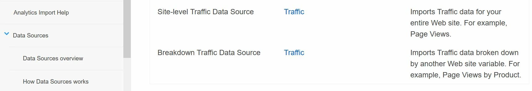 I am helping a customer to migrate their GA data to AA. I am checking on the Data Sources documentation but it seems Traffic Data Source type is no longer available. So we would like to know if we can still upload web metrics like page views, sessions and unique visitors from a CSV file to AA?