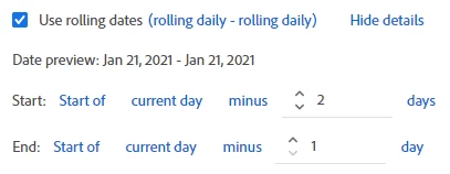 It takes a full 24 hours for revenue from our site to get sent to Adobe Analytics. So today's revenue is always "0," and Sunday's revenue gets added Monday around noon, Monday's is added on Tuesday, etc. I would like to set up a daily anomalous revenue alert, but when I do, it is triggered every single day, saying that revenue is zero (because of the delay). Is there a way to create a custom metric like "Yesterday's Revenue" or custom segment just for revenue from a day prior that I can use to trigger this alert instead? It is totally fine if the alert is delayed by a day.