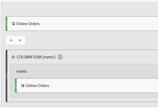 If you were to add up all the rows in the table for orders, you would get a number greater than the total because of this deduplication, so using the column sum function instead of relying on the default % will give you a more accurate result.