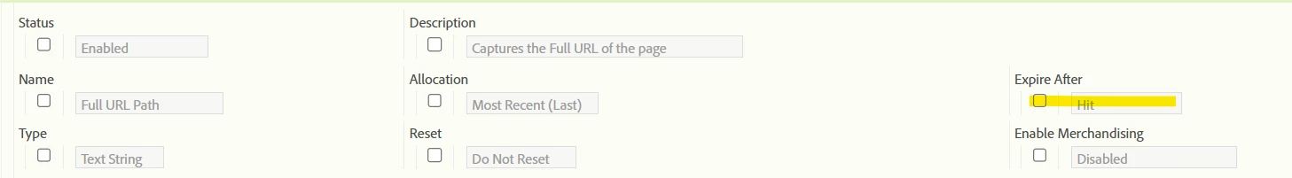 To change the expiry of an eVar, you can find the eVar in the list, and expand it (plus sign on the left).