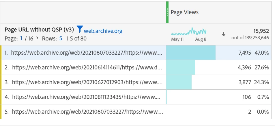 When I check our data for web.archive.org, I see between 20 and 30 Occurrences up until Oct 2021... then it drops down to pretty much nothing...