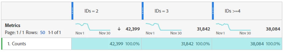 I understand that the counts is not "2" under "IDs=2" is because, user may visit ID1, ID2 in a visit, also visit ID3, ID6 in a visit.