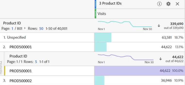 A calculated metric is also created: Approx. Distinct. of dimension Product ID