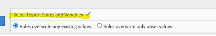 Note that Adobe won't let you choose a dimension that is already covered by a rule... so if you do have the scenario above, you will likely have to disconnect Suite X from the old rule set first, then create a new rule set (duplicating the rules that need to be same, and creating your variance for the single suite)