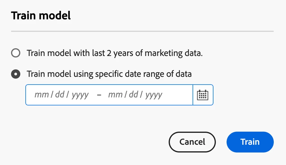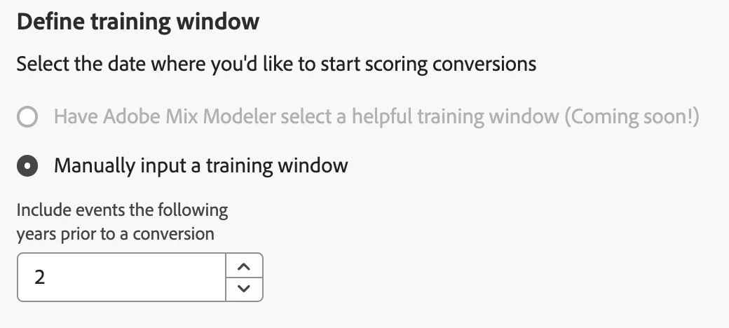 When you kick off a new model in AMM you can define a training window as a lookback from the most recent conversion. At this point we’re not able to use the valid training window identified in the previous step.