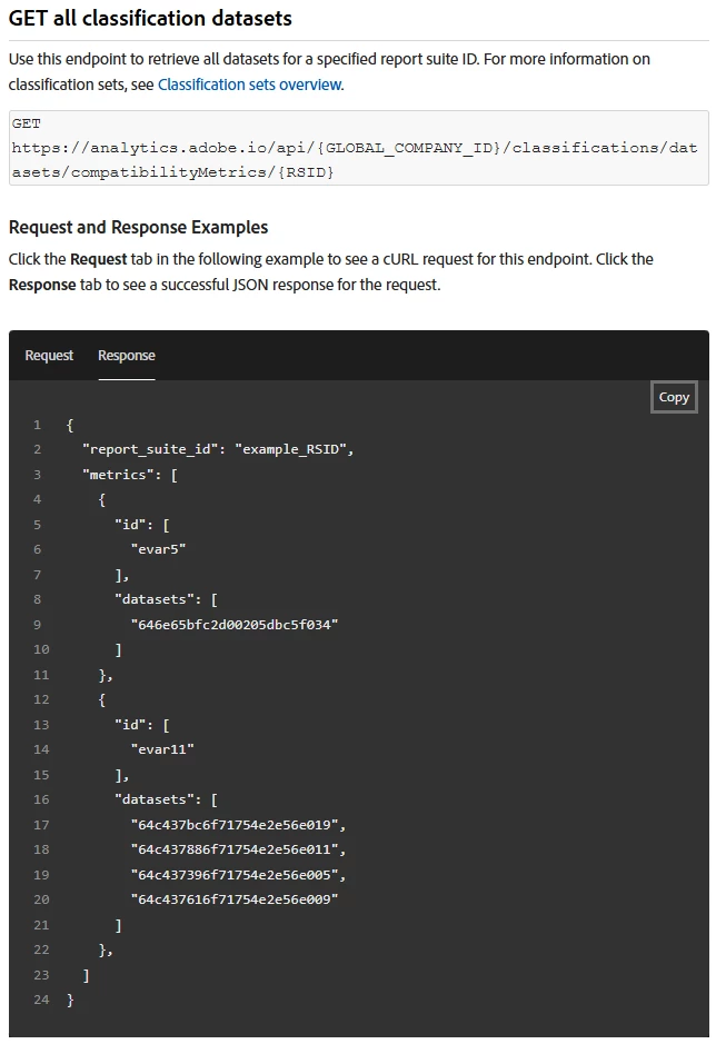 I am interested in programmatically importing txt files using the Admin tab's Classification Importer. I looked over the documentation available for using the API to accomplish this task (documentation link: https://developer.adobe.com/analytics-apis/docs/2.0/guides/endpoints/classifications/import-file/) but noticed that to use these API requests I need access to a dataset value. I found this API request that pulls down all dataSet values: GET https://{environment}.adobe.io/data/foundation/catalog/dataSets (documentation link: https://developer.adobe.com/experience-platform-apis/references/catalog/#tag/Datasets). But I cannot use this API request because it requires SandBox data which is information I do not have access to because I do not have Experience Platform access.