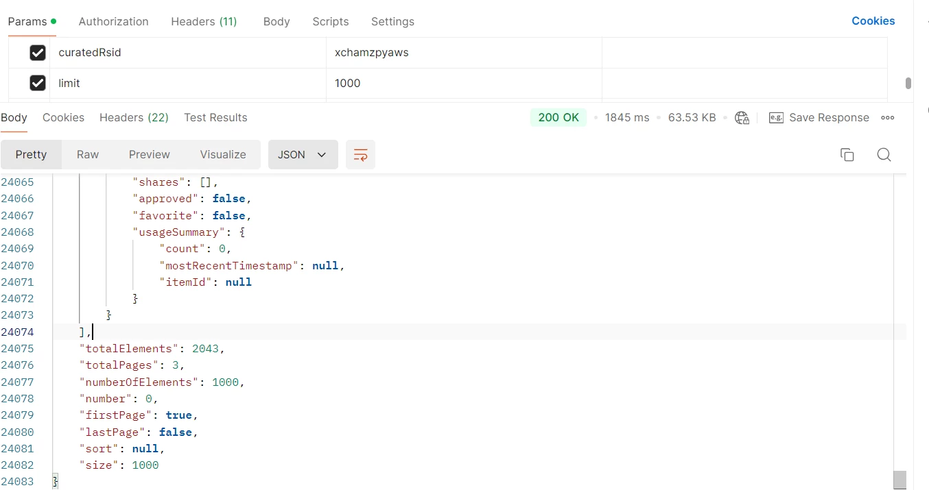 Here we have applied filter on curatedRsid field and it returned 2043 no. of data