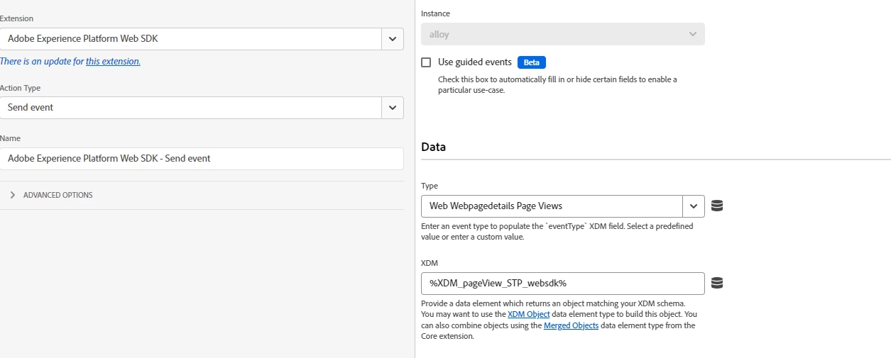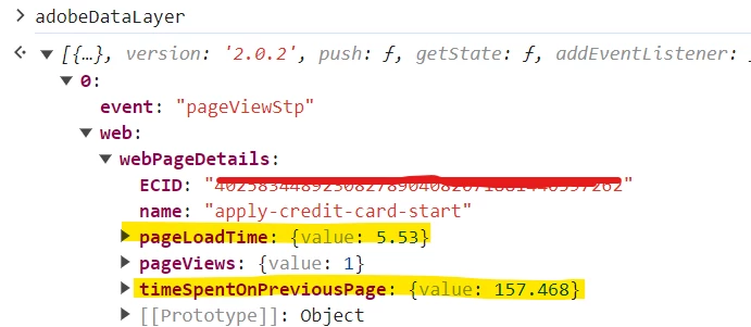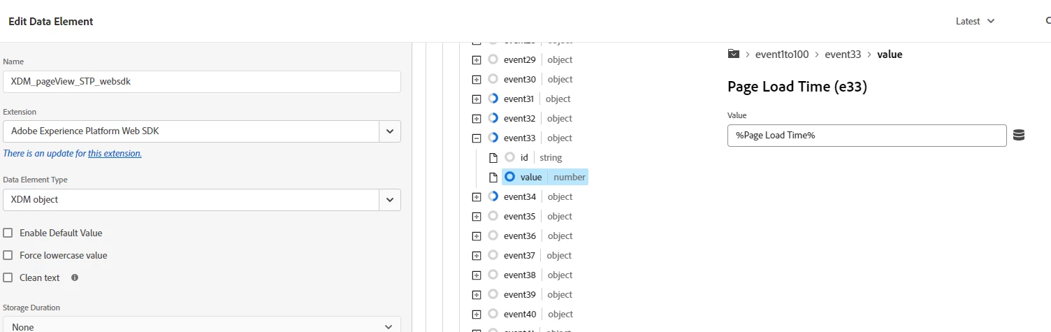 In page view call i want to append additional events like page-load time, time-spent on previous page (developer have passed the values in datalayer). Like this - web.webPageDetails.pageLoadTime and web.webPageDetails.timeSpentOnPreviousPage.
