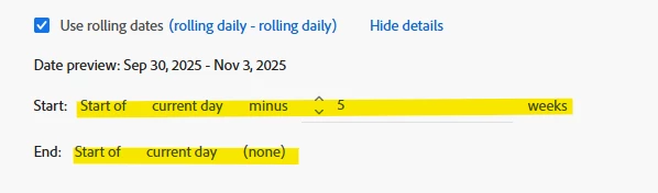 However, the only way I’ve been able to get the line graph to show a 5 week trend is by selecting a 5 week date range directly in the panel calendar. When I do that, the Summary Number and Key Metric Summary then use the start of that 5 week range as their reference point, which breaks the intended logic. Instead of seeing last week, week over week, and a 5 week trend, I end up seeing a 5 week trend plus two weeks prior to that.