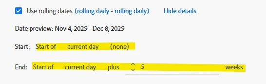 What I’m trying to figure out is whether there’s a way to apply a relative date range directly to the line graph itself, so it always shows the 5 weeks leading up to the panel calendar selection, without forcing the entire panel to be set to a 5 week range.