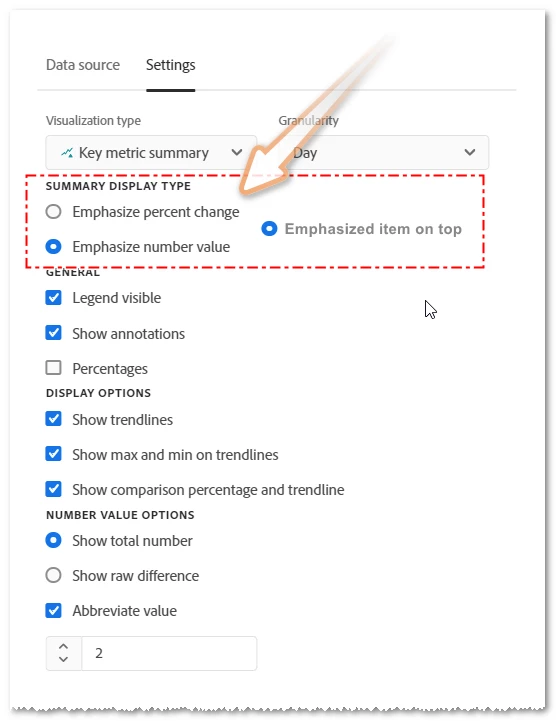 How would you like the feature to work - Adobe is already fairly close by providing us the choice to "Emphasize the number" vs. "Emphasize percent change." All they need to do is then add the option to say, "Show emphasized item on top," OR they could simply bypass that option and simply place the emphasized item on top automatically.