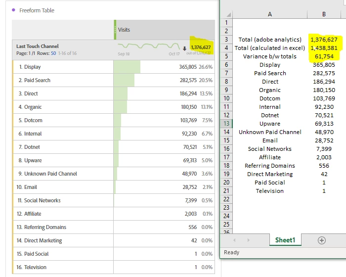 Last touch channel discrepancy - breaking down visits by last touch channel