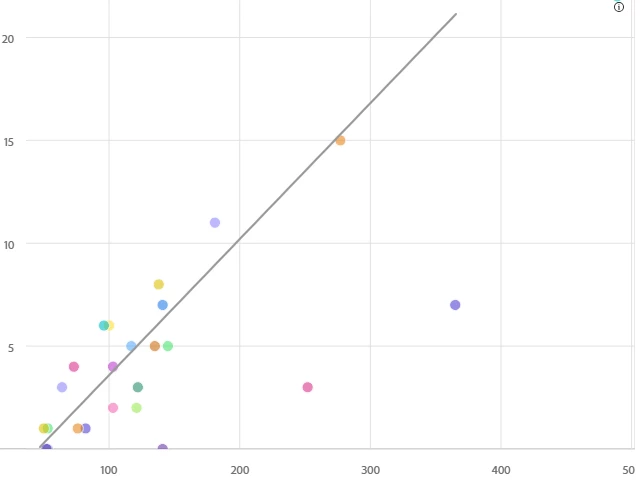 This would provide the ability to spot relationships and trends between two metrics and highlight value that are outliers, either way above or below the line. This data can greatly help drive business decisions.