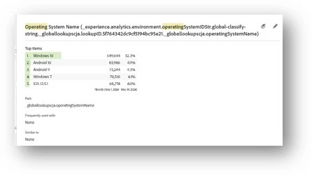 And the corresponding OS Name field will be generated by CJA as part of the standard Adobe Lookup (and this field path is not part of the XDM schema), see below