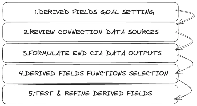 1. Understanding Your CJA Component Data Outputs: Before creating derived fields, it is important to have a thorough understanding of your holistic CJA end data. What types of derived field component data do you want as outcomes? What will be the end output data structures? Will there be any limitations of the component data when applied as derived fields, assuming maximum possible coverage? Understanding the scalability and flexibility of your available derived field data will help you create more accurate and effective derived fields.