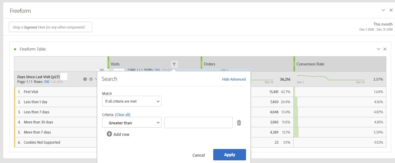 What I would love to see is the ability to do this on metrics (greater than / less than) as currently we have to do these reports in report builder / excel.