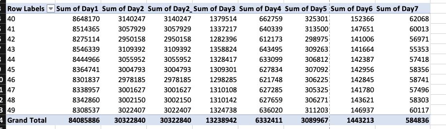 Attaching a screenshot of the expected report, the row labels are week numbers: Oct to Dec 2022.