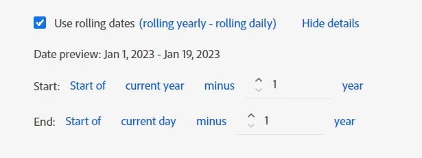 I am looking to conduct a dynamic data comparison by comparing the current year's sales data with that of the same period last year. The data is continually rolling, with each day's sales data contributing to the total sales. consequently, I expect the sales data from the corresponding period last year to also accumulate accordingly. however, I've observed that the data from last year is not automatically increasing. Could you please provide guidance on configuring this setup effectively? thanks