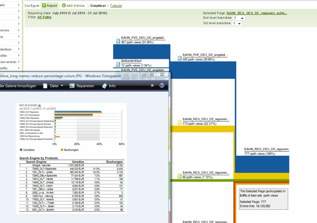 Example 1: In the Previous/ Next Page Flow Report the pagename is cut after 23 characters. The full pagename is only visible by mouseover. If you print the report as PDF and sent it out, nobody is able to use the report.