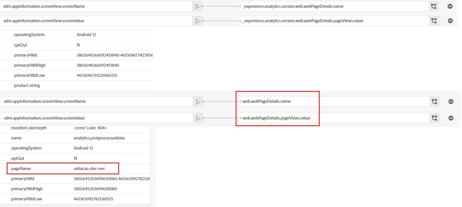 Page name is mapped to _experience.analytics.session.web.webpagedetails.name