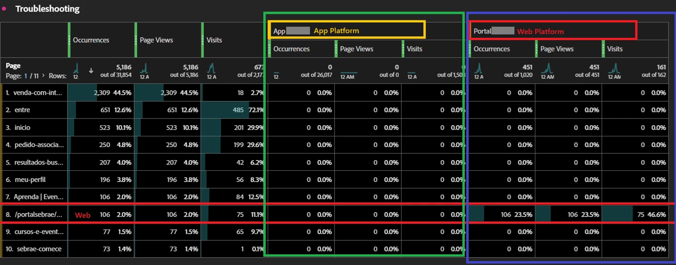 eVar14 is populated in the same Analytics hit and represents the platform Web Platform