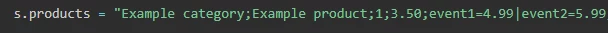 Giving product string for single item, how many element/semicolumn come before product name? For instance I have s.products = "<Category>";"<Product Name>";"<Quantity>";"<Price>";"<Events>";"<eVars>