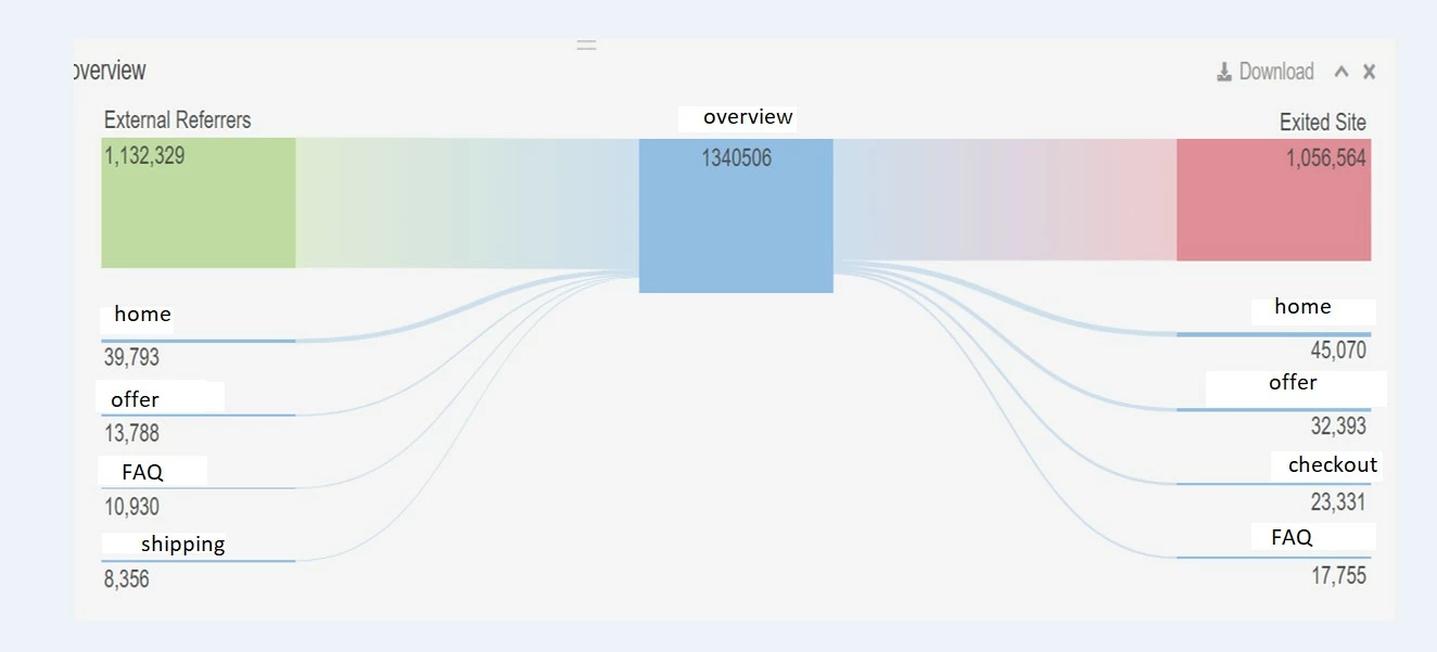 When using the Adobe Activity Map extension and selecting 'Page Details,' a flow chart is generated, grouping external sources in a clear, organized view. Is there a way to replicate this flow chart directly in Adobe Analytics, particularly with external sources grouped similarly? Currently, when I try to recreate this flow in Adobe Analytics, I must set the dimension to start/contains/end with 'page,' which prevents external sources from being grouped. Is there a way to achieve the same grouping and layout as seen in Activity Map?