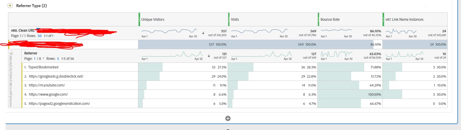 In the table below, out of 557 unique visitors, 121 have a referrer type specified. Similarly, out of 569 visits, 127 have a referrer type specified. Where are the rest of the unique visitors and visits?