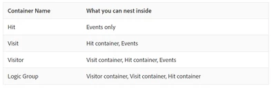 The one thing I noticed was that the segment has to be created for events alone and what two segment containers could be used for that.