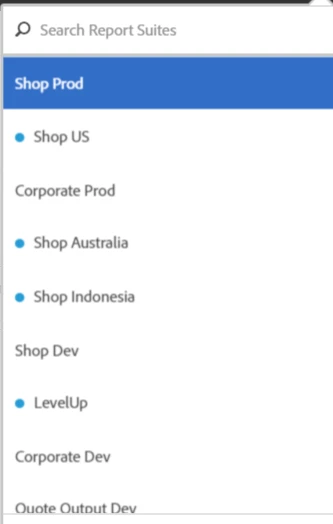 The below example is not organized. I would like a single "Shop" selection that expanded the related report suites: