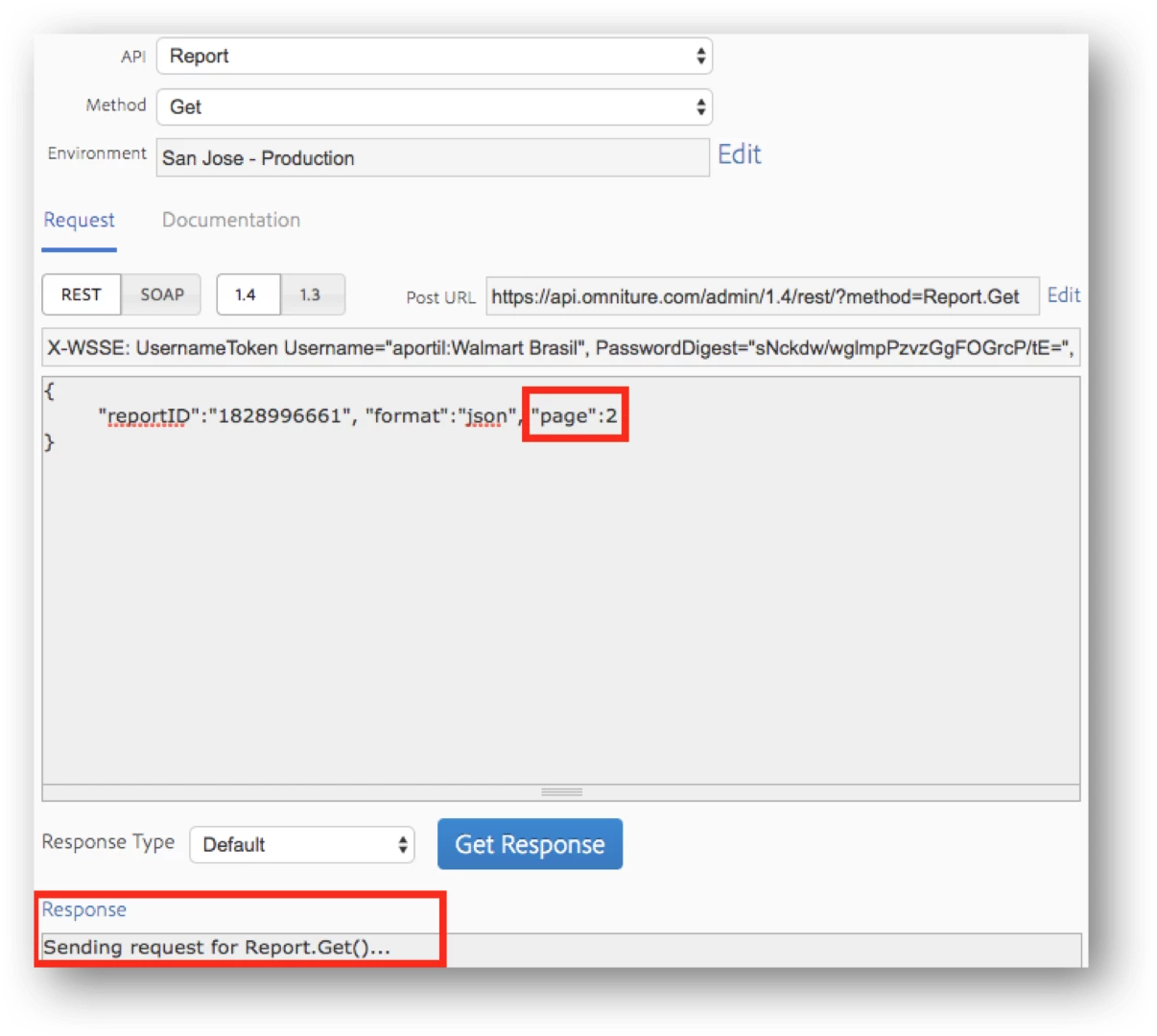 While trying to actually extract the second page the Responses is presenting ‘forever’ the following message: “sending request for repot.get()...” .