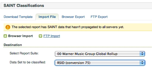 The SAINT admin UI displays a handy little notification that a particular report has data that hasn't propagated to all servers yet - see screenshot