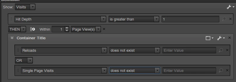 Is there anyway to create segment to: all traffic include (or exclude) visit same page URL when user enter site? To me it means exclude page refresh.