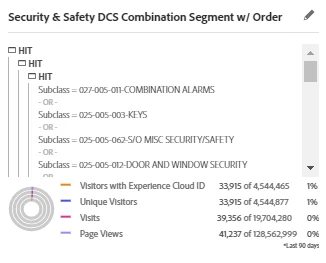 This is a snap shot of the last seven dimensions (subclass) in the segment I built: