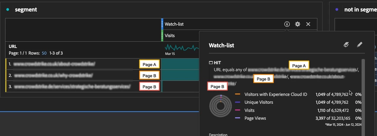 - I created a hit-based segment that was "equals any of" 3 different URL's