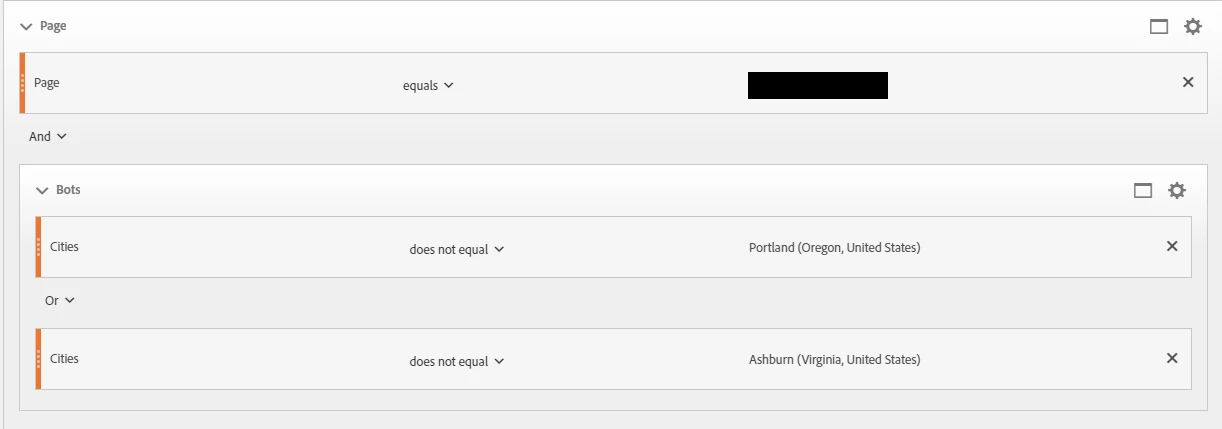 So you want to segment a page and exclude Portland and Ashburn right?