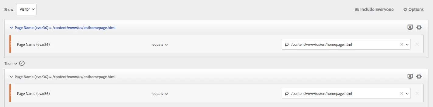 Now my issue is, if I add the condition "AFTER 1 VISIT" next to the THEN operator, I get a lesser number of visitors (about 40K visitors). Although logically this should give me the same result of 85K visitors if my understanding is correct, since the original segment should have looked for visitors that saw the homepage twice in separate visits (so after 1 visit or more).