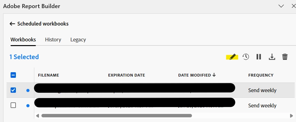 It is in the new report builder. I didn’t realize I could just open a random Excel workbook and view my scheduled reports created elsewhere. So it should be deleted now. Thank you!