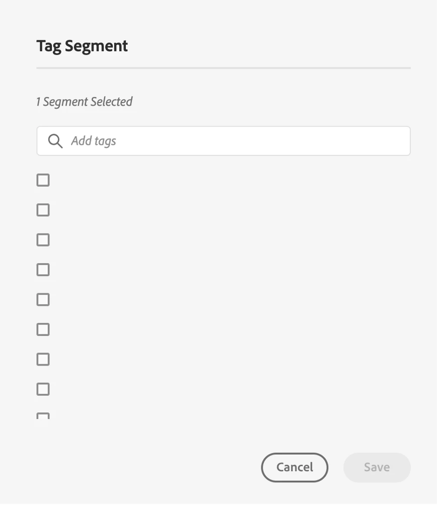 - Check the box once you identify the correct segment, and click “Tag.” Similar to the example above, ou will see a list of tag groups to select from, as shown below: