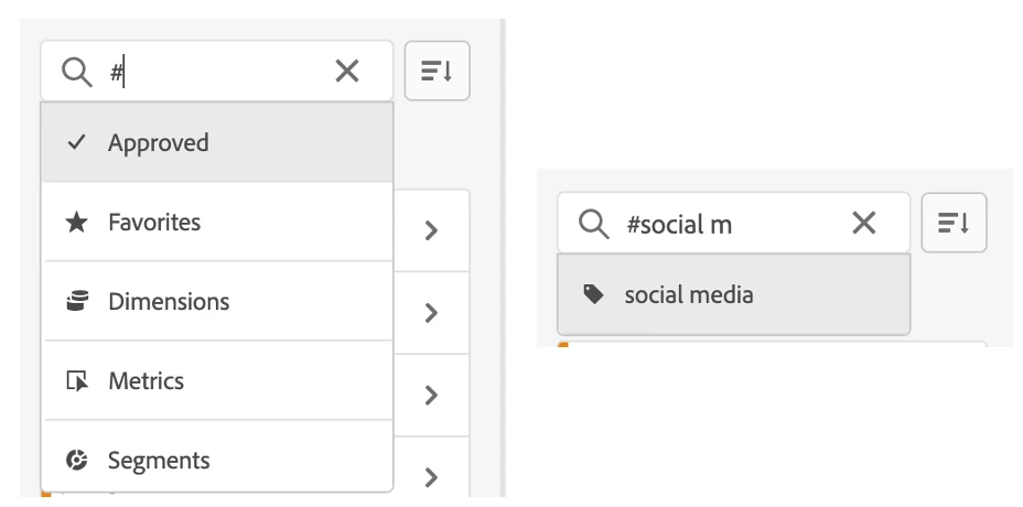 6. To search for the segment tag groups in Workspace, use the search bar on the right-hand side. Type in “#” before the name of the tag group name to find it. In this case, we are looking for the tag group called “Social Media.”
