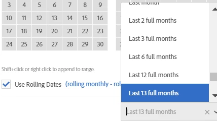 regarding the pre-defined time ranges, there is already "last 60 complete days" and "last 90 complete days", but I would like "last 30 complete days" as well (or "last 28 complete days").