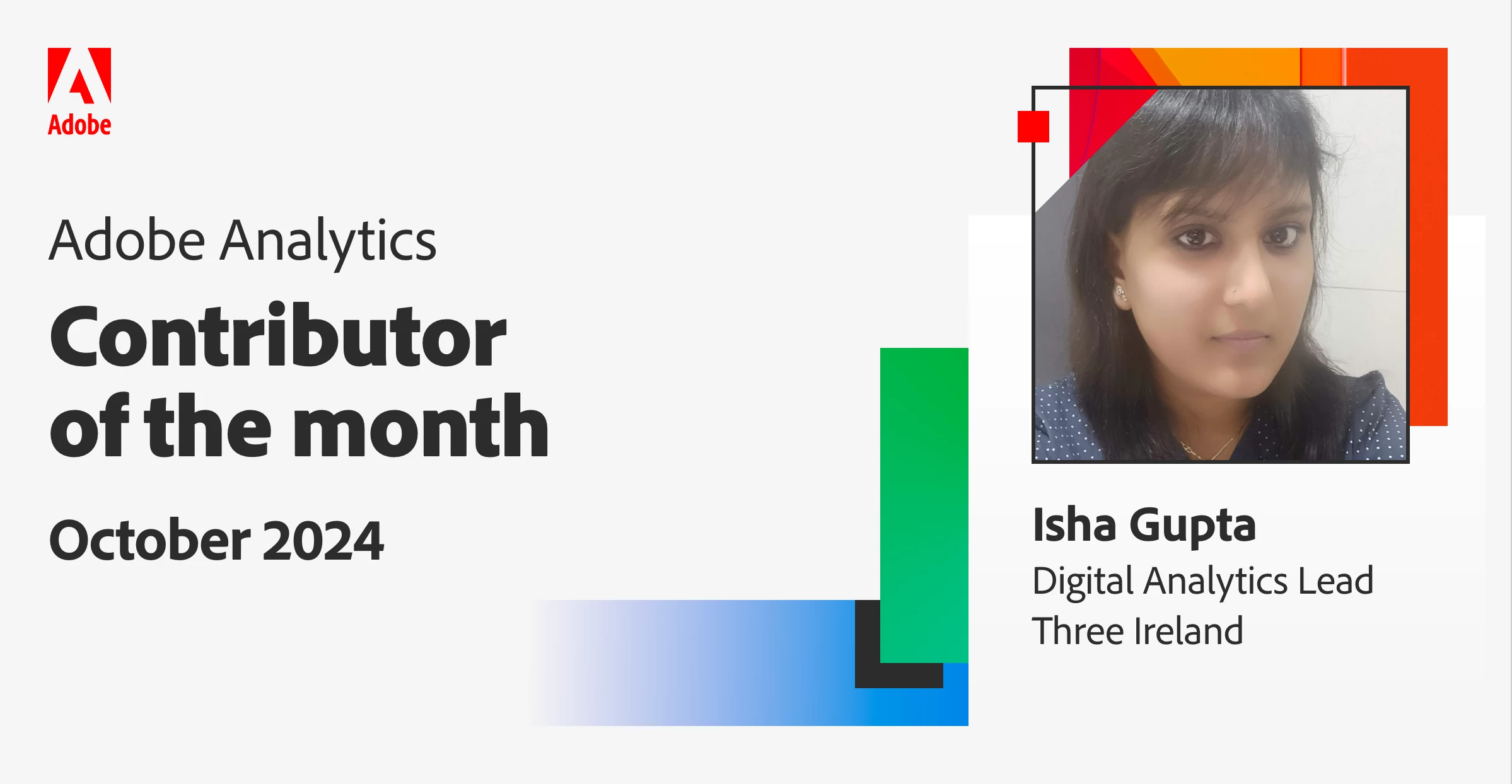 Congrats to Isha Gupta (aka @igupta) for being our Top Contributor this October 2024! 🙌 Her expert insights, helpful solutions, and dedication to supporting fellow users have made a huge impact in the community. Thank you for your dedication, Isha, and for making the Adobe Analytics community a stronger, more vibrant place! 🌟 Let's all take a moment to celebrate her outstanding efforts and continue to learn from one another!