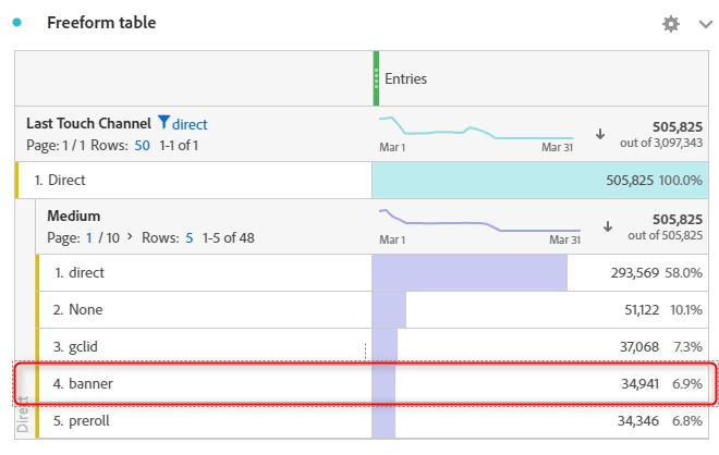 I have a doubt that I cannot resolve, for the "direct" marketing channel I register traffic that is tagged with the medium Banner.