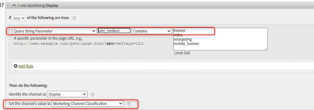 According to the marketing channel processing rules, all traffic registered with medium Banner should be tagged as a display,